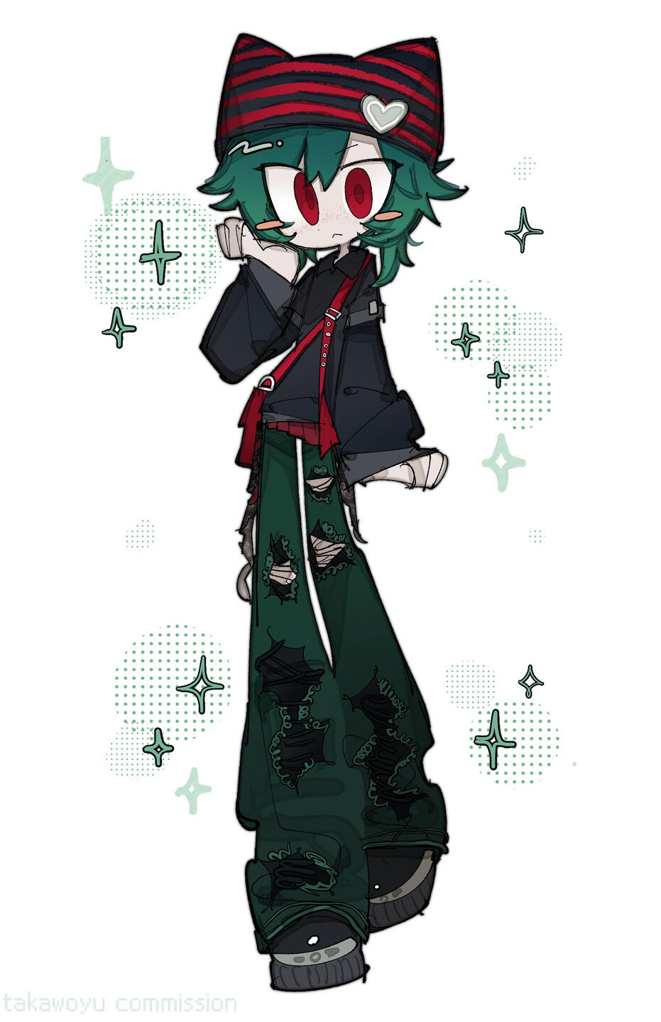 GENDER: nonbinary BUILD: thin, fem, flat-chested HEIGHT: 5’2” / 157 cmSKIN: pale, freckled cheeks HAIR: dark turquoise to sea green; short, layered, and messy with long face-framing strands EYES: cool carmine red PERSONALITY: introverted, observant, neurotic; silly and playful when comfortablePALETTE: cool tones, often dark and saturated; avoid blue, purple, pink, and orange STYLE: androgynous, modern y2k grunge, skin mostly coveredAVOID: nsfw/suggestive
